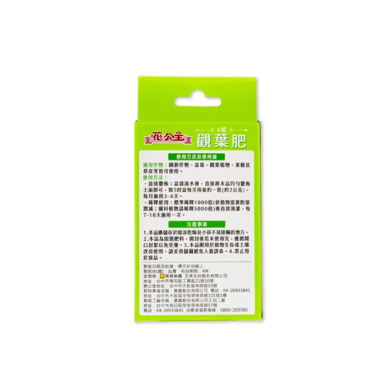 廠牌商品名稱:花公主4號觀葉肥(新)