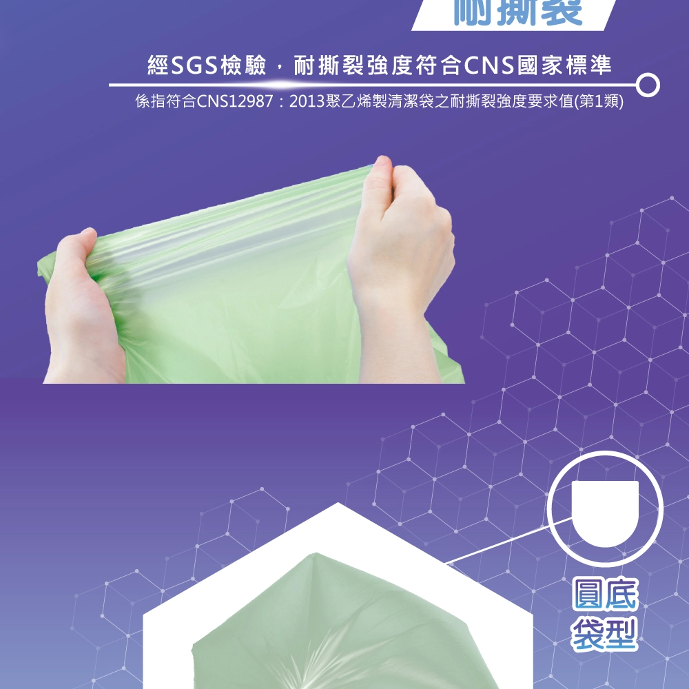 (係指符合CNS12987:2013聚乙烯製清潔袋之耐撕裂強度要求值,第一類) - 無添加人工香精,使用無負擔