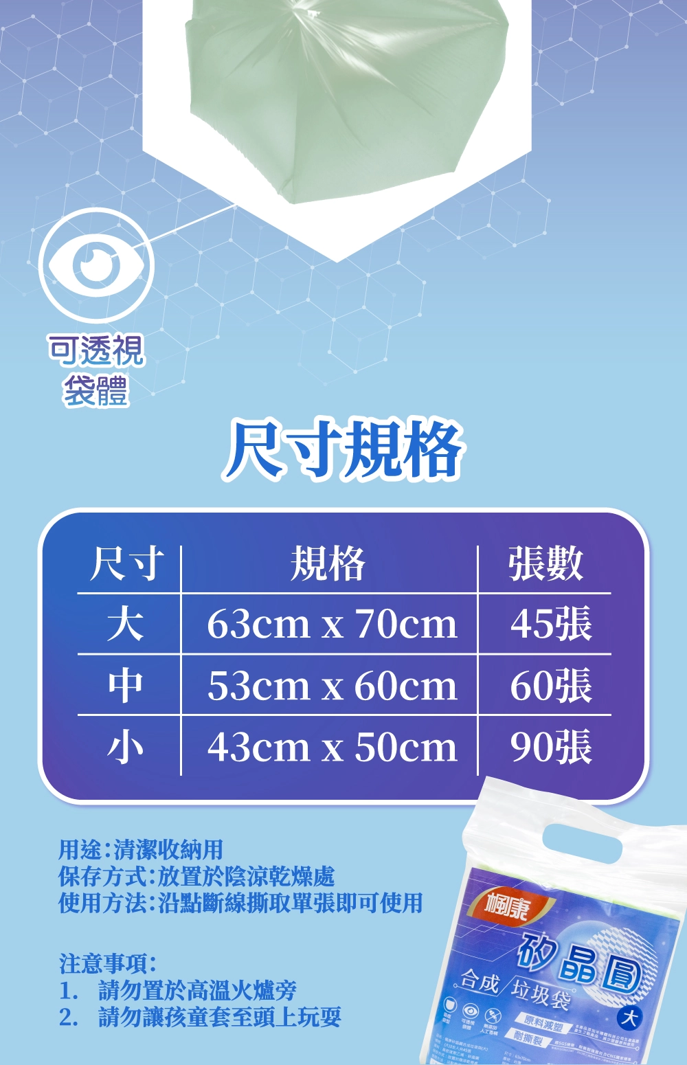 - 可透視袋體,符合政府環保政策
