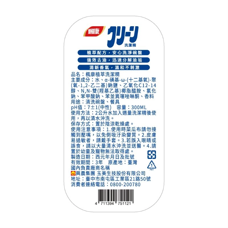 - 品名:楓康植萃洗潔精