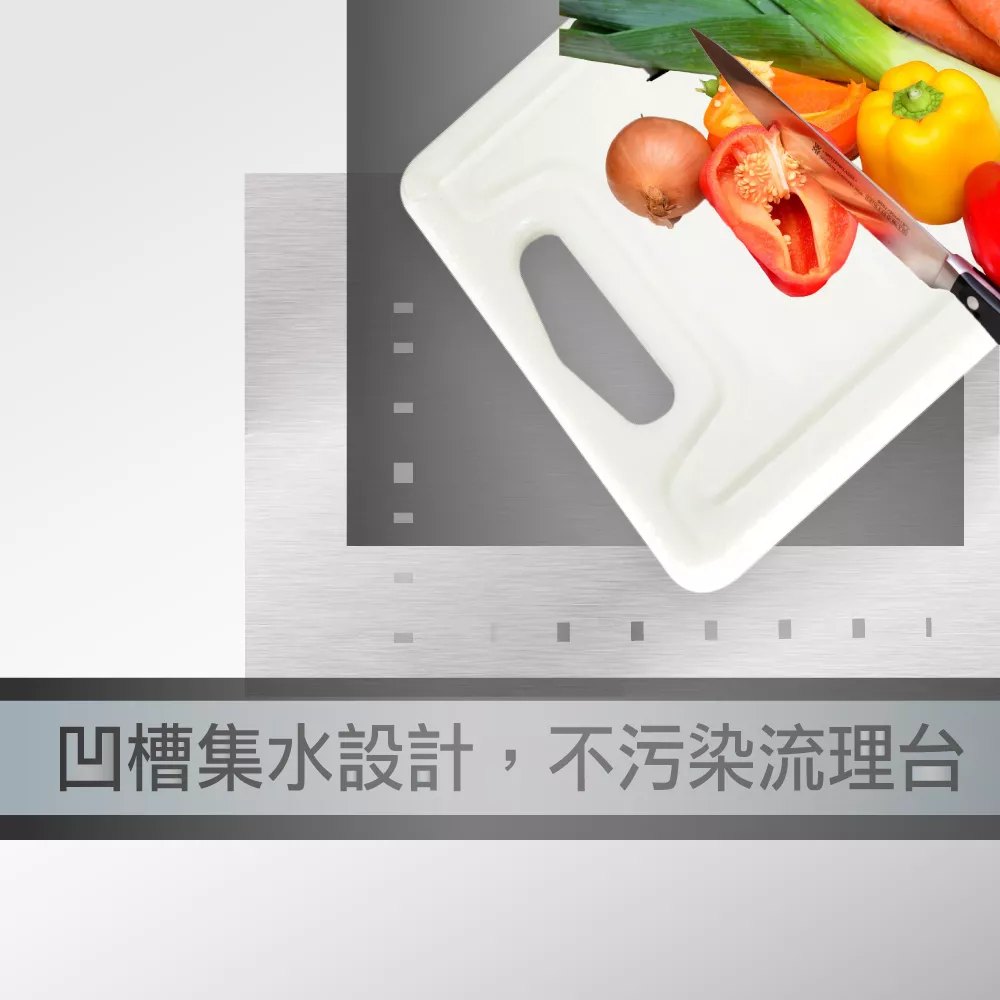 - 凹槽集水設計,不易污染流理台