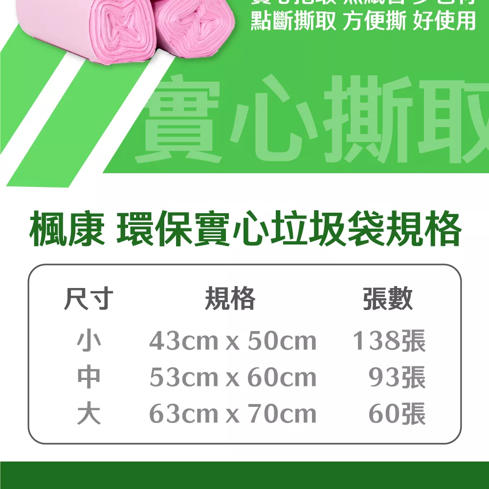 - 品名:楓康環保實心撕取式垃圾袋(小/中/大)