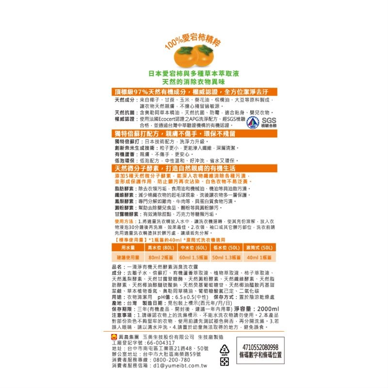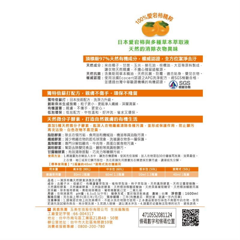 - 品名:一滴淨有機天然酵素消臭洗衣露