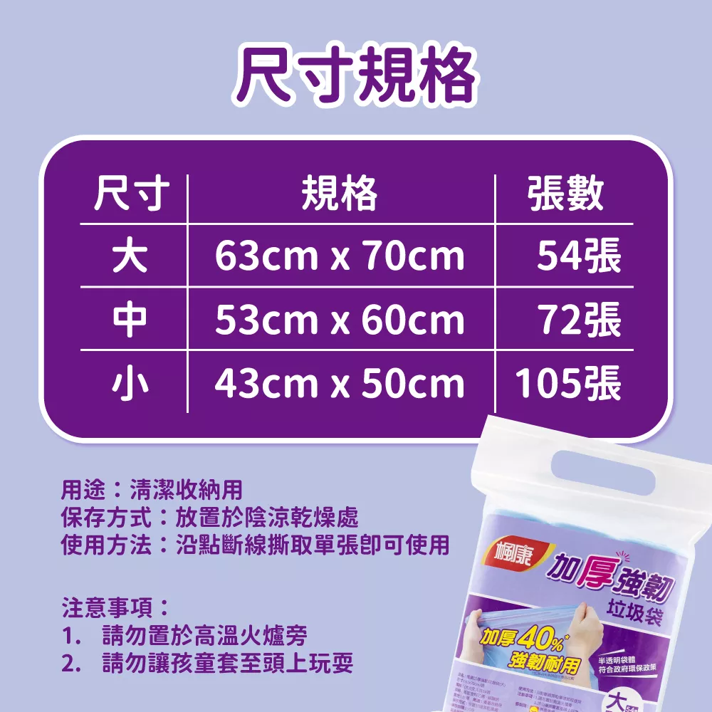 - 品名:楓康加厚強韌垃圾袋(小/中/大)