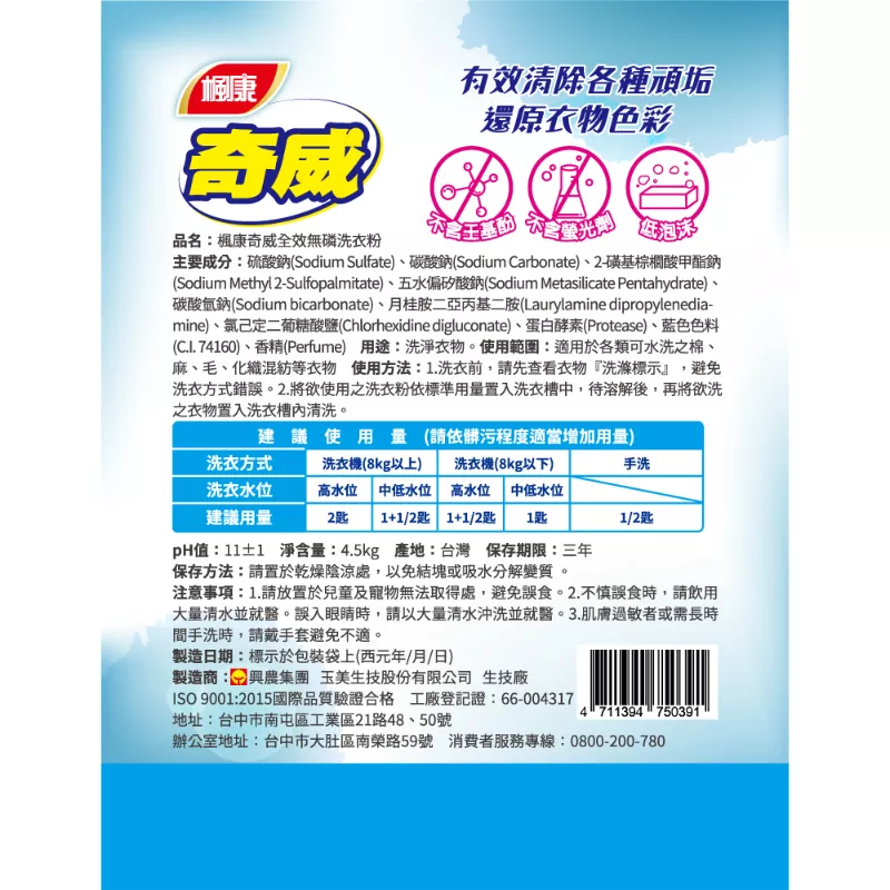 - 品名:楓康奇威全效無磷洗衣粉