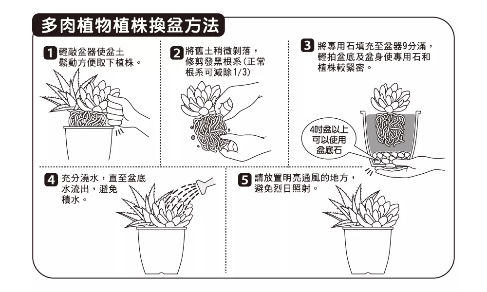 - 充分澆水,直至盆底水流出,避免積水。