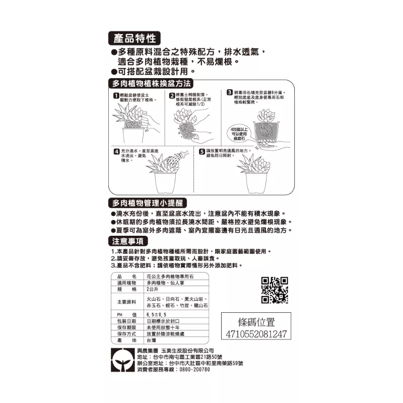 - 多種原料混合之特殊配方,排水透氣,不易爛根